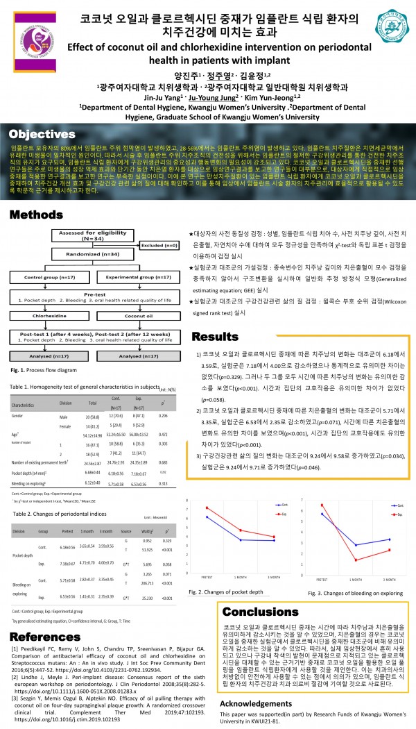 2021 종합학술대회 회원포스터 19. 코코넛 오일과 클로르헥시딘 중재가 임플란트 식립 환자의 치주건강에 미치는 효과