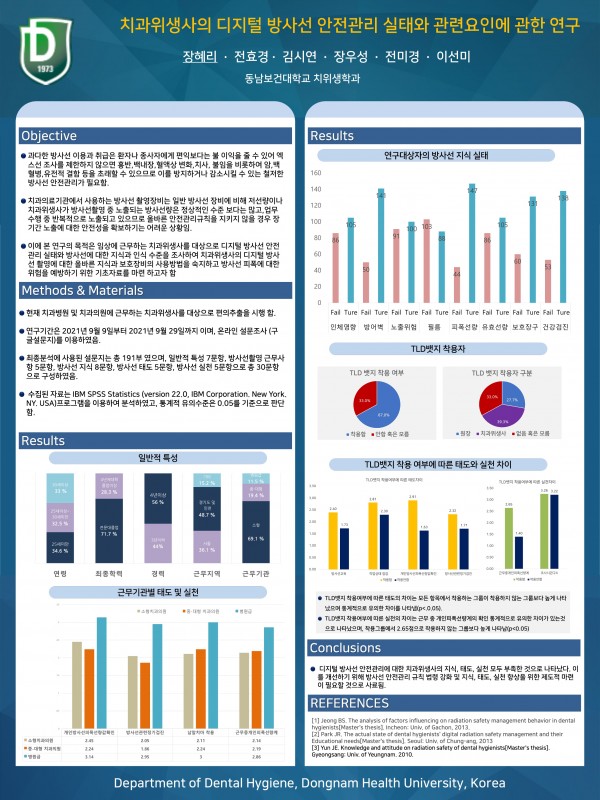 2021 종합학술대회 학생포스터 52. 치과위생사의 디지털 방사선 안전관리 실태와 관련요인에 관한 연구