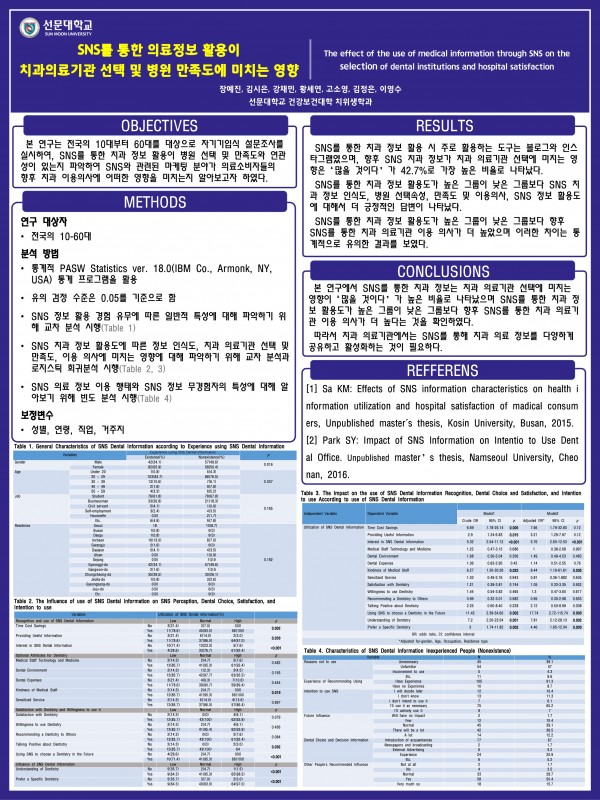 2021 종합학술대회 학생포스터 17. SNS를 통한 의료정보 활용이 치과의료기관 선택 및 병원 만족도에 미치는 영향