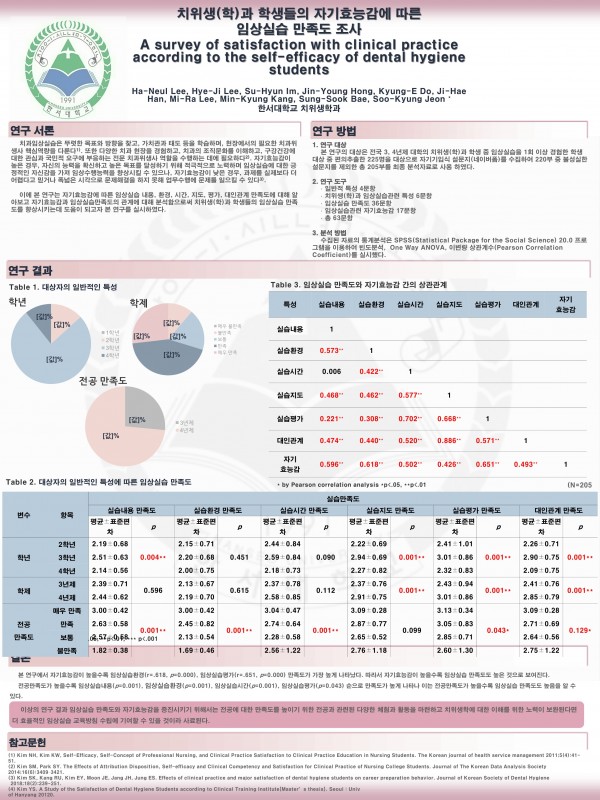 2021 종합학술대회 학생포스터 19. 치위생(학)과 학생들의 자기효능감에 따른 임상실습 만족도
