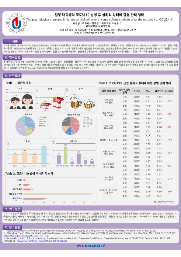 2021 종합학술대회 학생포스터 43. 일부 대학생의 코로나19 발생 후 심리적 상태와 감염 관리 행태