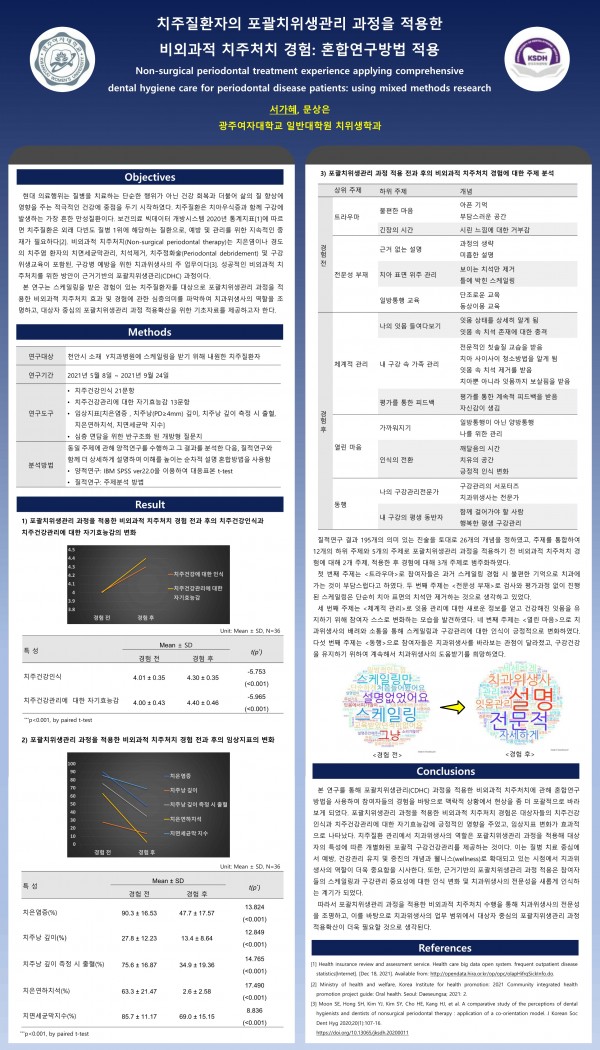2022 춘계학술대회 16. 치주질환자의 포괄치위생관리 과정을 적용한 비외과적 치주처치 경험 페이지 정보 작성자 한국치위생학회 작성일22-05-12 23:52 조회2,887회 댓글0건 관련링크 이전글 다음글 목록 본문 2022 춘계학술대회 16. 치주질환자의 포괄치위생관리 과정을 적용한 비외과적 치주처치 경험 [이 게시물은 한국치위생학회님에 의해 2022-05-13 00:10:16 학술대회참가용 자료에서 복사 됨] 댓글목록 등록된 댓글이 없습니다. 이전글 다음글 목록