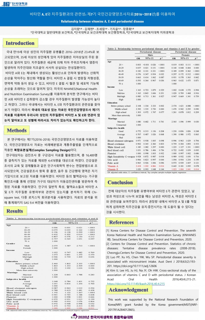 대학원02.비타민 A, E와 치주질환과의 관련성_제7기 국민건강영양조사자료(2016∼2018년)를 이용하여 페이지 정보 작성자 한국치위생학회 작성일20-11-01 21:59 조회1,280회 댓글0건 관련링크 이전글 다음글 목록 본문 대학원02.비타민 A, E와 치주질환과의 관련성_제7기 국민건강영양조사자료(2016∼2018년)를 이용하여 댓글목록 등록된 댓글이 없습니다. 이전글 다음글 목록