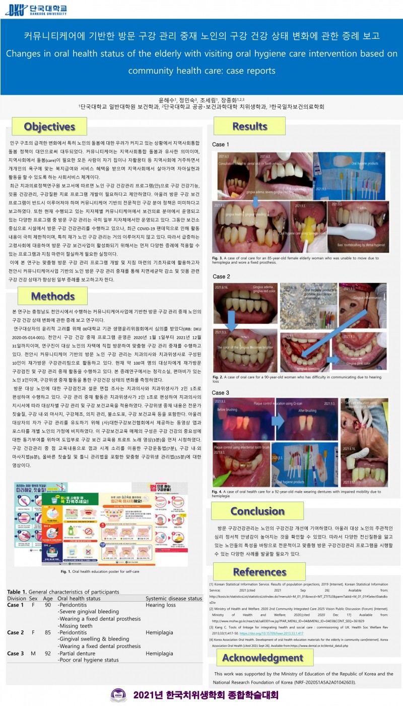 2021 종합학술대회 회원포스터 20. 커뮤니티케어에 기반한 방문 구강 관리 중재 노인의 구강 건강 상태 변화에 관한 증례 보고