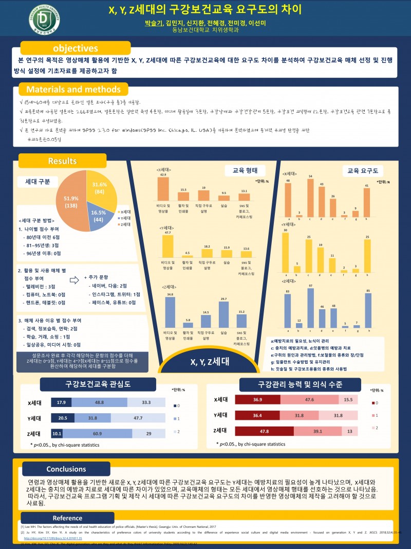 35.X, Y, Z세대의 구강보건교육 요구도의 차이 페이지 정보 작성자 한국치위생학회 작성일20-11-01 21:35 조회1,221회 댓글0건 관련링크 이전글 다음글 목록 본문 35.X, Y, Z세대의 구강보건교육 요구도의 차이 댓글목록 등록된 댓글이 없습니다. 이전글 다음글 목록