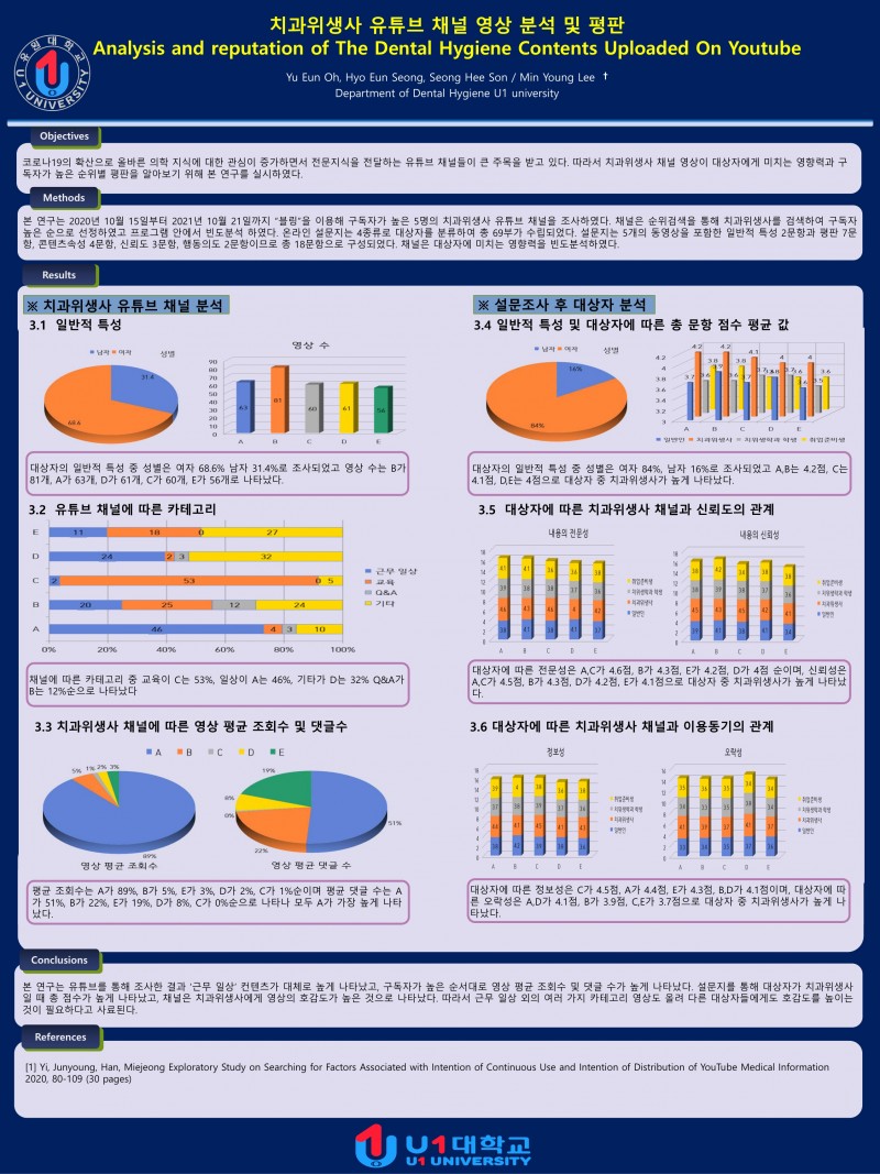 2021 종합학술대회 학생포스터 31. 치과위생사 유튜브 채널 영상 분석 및 평판 페이지 정보 작성자 한국치위생학회 작성일21-10-30 21:15 조회1,125회 댓글0건 관련링크 이전글 다음글 목록 본문 2021 종합학술대회 학생포스터 31. 치과위생사 유튜브 채널 영상 분석 및 평판 [이 게시물은 한국치위생학회님에 의해 2021-10-30 21:46:46 학술대회참가용 자료에서 복사 됨] 댓글목록 등록된 댓글이 없습니다. 이전글 다음글 목록