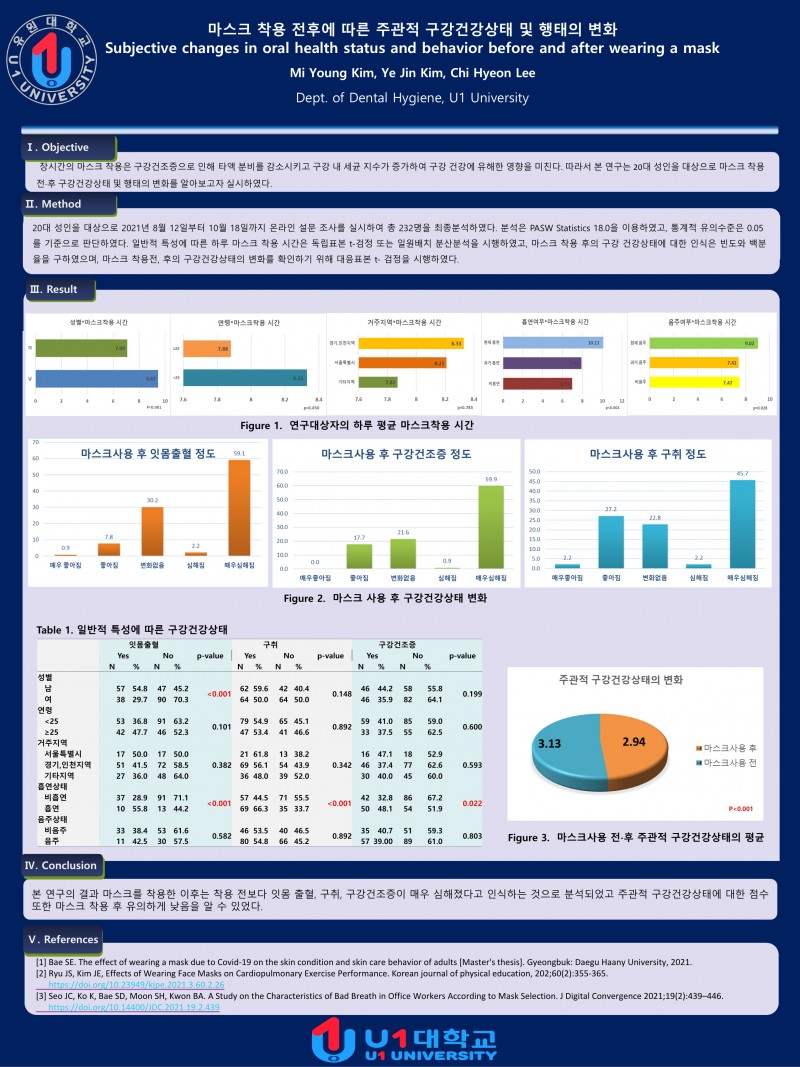 2021 종합학술대회 학생포스터 33. 마스크 착용 전·후에 따른 주관적 구강건강상태 및 행태의 변화