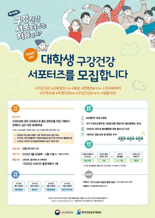 [ 한국건강증진개발원 통합건강팀 공고 ] 대학생 구강건강 서포터즈 모집안내