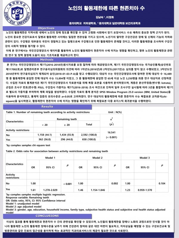 2021 종합학술대회 회원포스터 3. 노인의 활동제한에 따른 현존치아 수
