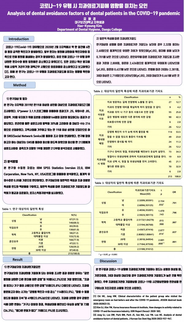 2021 종합학술대회 회원포스터 8. 코로나-19 유행 시 치과의료기피에 영향을 미치는 요인