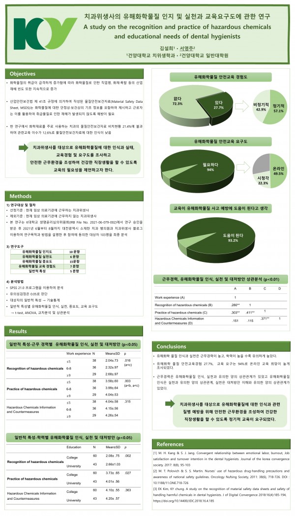 2021 종합학술대회 회원포스터 15. 치과위생사의유해화학물질인지및실천과교육요구도에관한연구