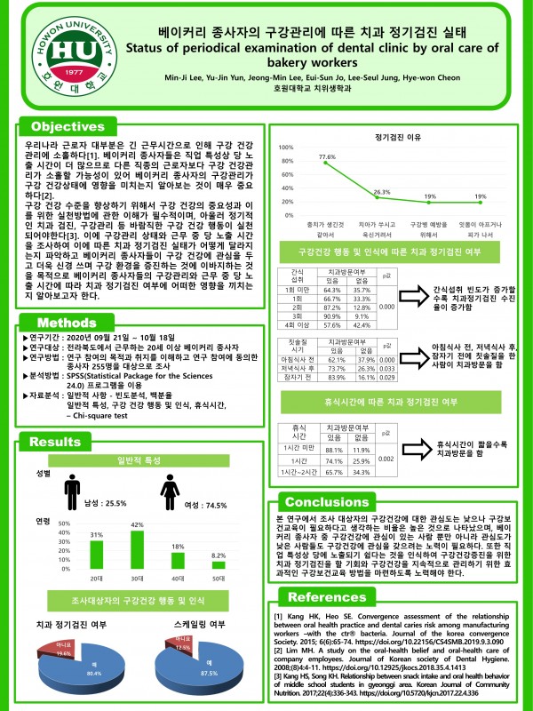 2021 종합학술대회 학생포스터 4. 베이커리 종사자의 구강관리에 따른 치과 정기검진 실태