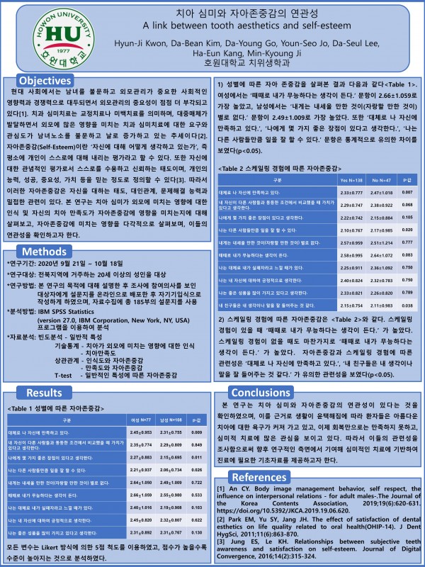 2021 종합학술대회 학생포스터 5. 치아 심미와 자아존중감의 연관성