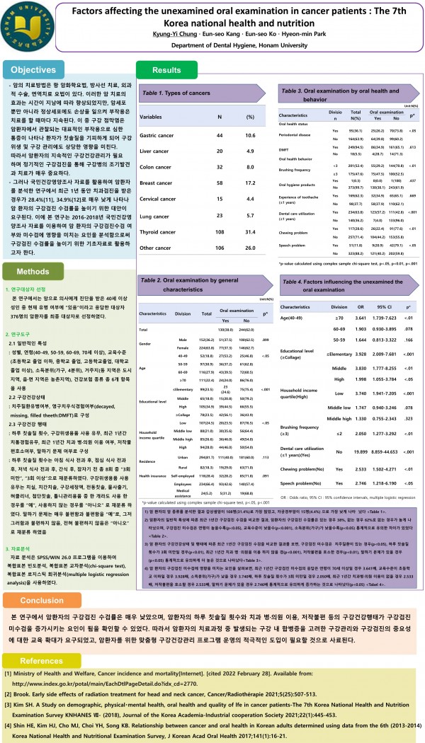 2022 춘계학술대회 회원포스터 10. 암환자의 구강검진 미수검에 영향을 미치는 요인 페이지 정보 작성자 한국치위생학회 작성일22-05-12 23:46 조회3,097회 댓글0건 관련링크 이전글 다음글 목록 본문 10. 암환자의 구강검진 미수검에 영향을 미치는 요인 [이 게시물은 한국치위생학회님에 의해 2022-05-13 00:09:57 학술대회참가용 자료에서 복사 됨] 댓글목록 등록된 댓글이 없습니다. 이전글 다음글 목록