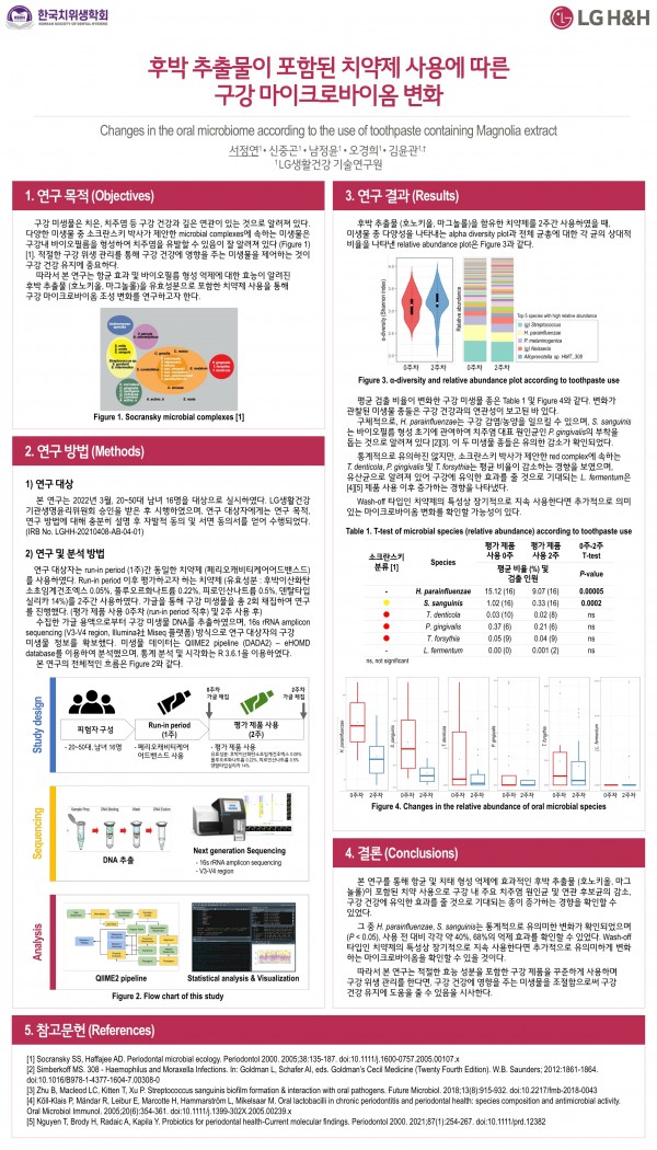 2022 춘계학술대회 회원포스터 11. 후박 추출물이 포함된 치약제 사용에 따른 구강 마이크로바이옴 변화 페이지 정보 작성자 한국치위생학회 작성일22-05-12 23:46 조회3,159회 댓글0건 관련링크 이전글 다음글 목록 본문 11. 후박 추출물이 포함된 치약제 사용에 따른 구강 마이크로바이옴 변화 [이 게시물은 한국치위생학회님에 의해 2022-05-13 00:09:57 학술대회참가용 자료에서 복사 됨] 댓글목록 등록된 댓글이 없습니다. 이전글 다음글 목록