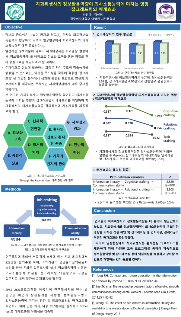 2022 춘계학술대회 19. 치과위생사의 정보활용역량이 의사소통능력에 미치는 영향 페이지 정보 작성자 한국치위생학회 작성일22-05-12 23:53 조회3,336회 댓글0건 관련링크 이전글 다음글 목록 본문 19. 치과위생사의 정보활용역량이 의사소통능력에 미치는 영향 [이 게시물은 한국치위생학회님에 의해 2022-05-13 00:10:16 학술대회참가용 자료에서 복사 됨] 댓글목록 등록된 댓글이 없습니다. 이전글 다음글 목록