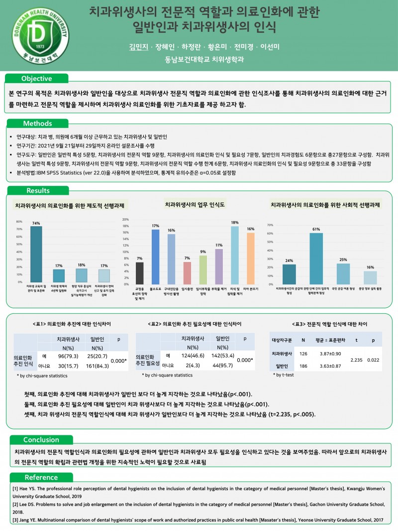 2021 종합학술대회 학생포스터 51. 치과위생사의 전문적 역할과 의료인화에 관한 일반인과 치과위생사의 인식