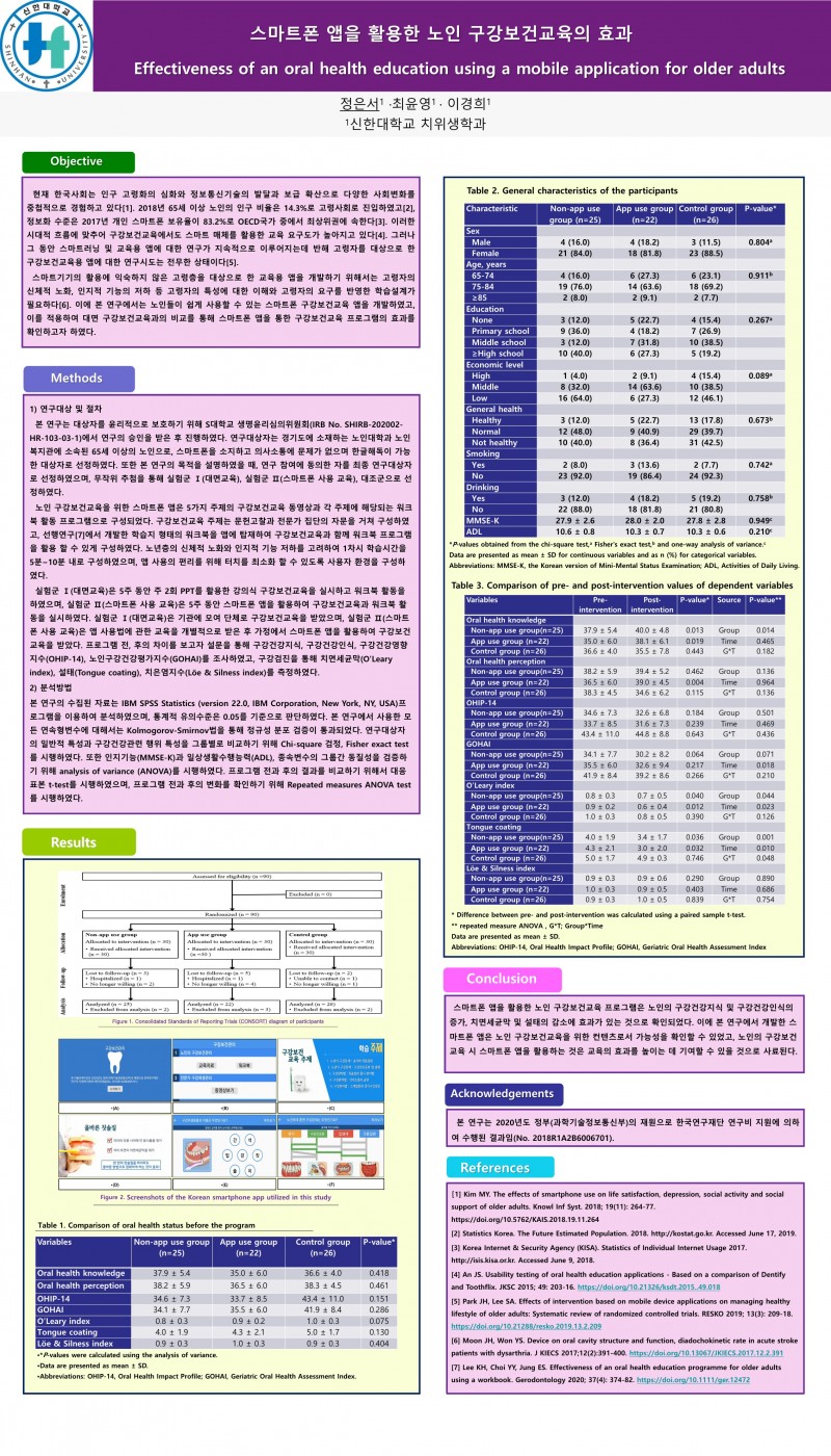 2021 종합학술대회 회원포스터 1. 스마트앱을 활용한 노인 구강보건교육의 효과 페이지 정보 작성자 한국치위생학회 작성일21-10-30 21:26 조회941회 댓글0건 관련링크 이전글 다음글 목록 본문 2021 종합학술대회 회원포스터 1. 스마트앱을 활용한 노인 구강보건교육의 효과 [이 게시물은 한국치위생학회님에 의해 2021-10-30 21:45:20 학술대회참가용 자료에서 복사 됨] 댓글목록 등록된 댓글이 없습니다. 이전글 다음글 목록
