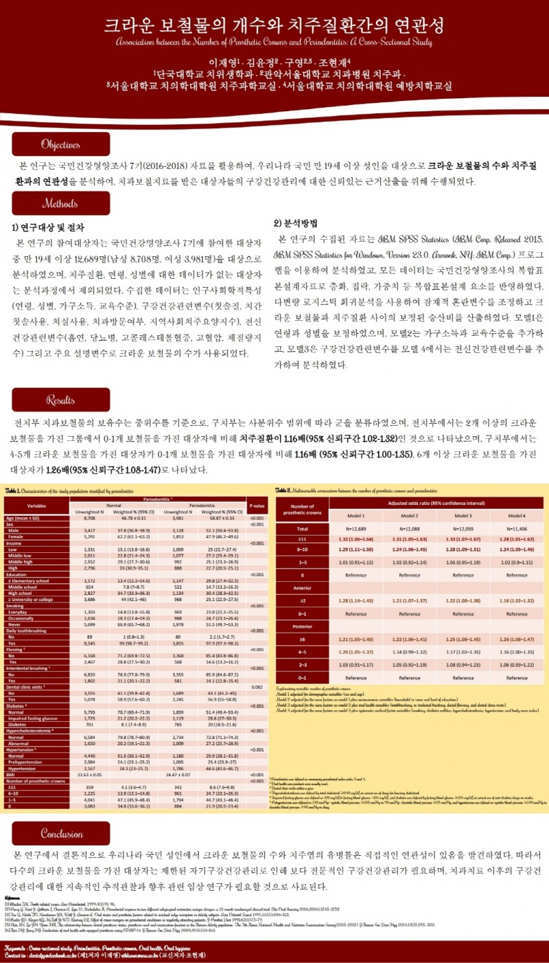 6. 크라운 보철물의 개수와 치주질환간의 연관성 페이지 정보 작성자 한국치위생학회 작성일21-05-13 23:19 조회1,204회 댓글0건 관련링크 이전글 다음글 목록 본문 6. 크라운 보철물의 개수와 치주질환간의 연관성 댓글목록 등록된 댓글이 없습니다. 이전글 다음글 목록