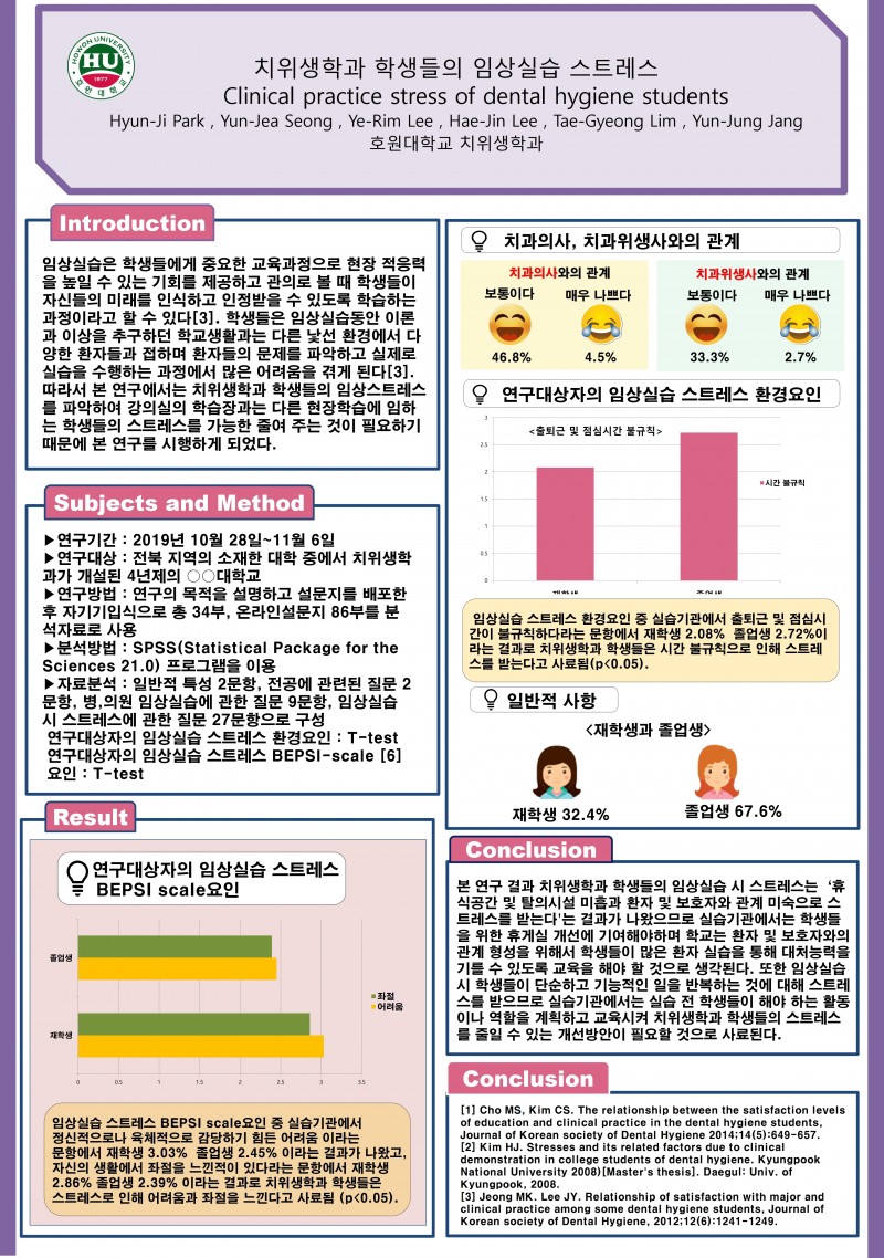 [학생포스터] 01.치위생학과 학생들의 임상실습 스트레스 페이지 정보 작성자 한국치위생학회 작성일20-11-01 18:11 조회1,330회 댓글0건 관련링크 이전글 다음글 목록 본문 [학생포스터] 01.치위생학과 학생들의 임상실습 스트레스 댓글목록 등록된 댓글이 없습니다. 이전글 다음글 목록