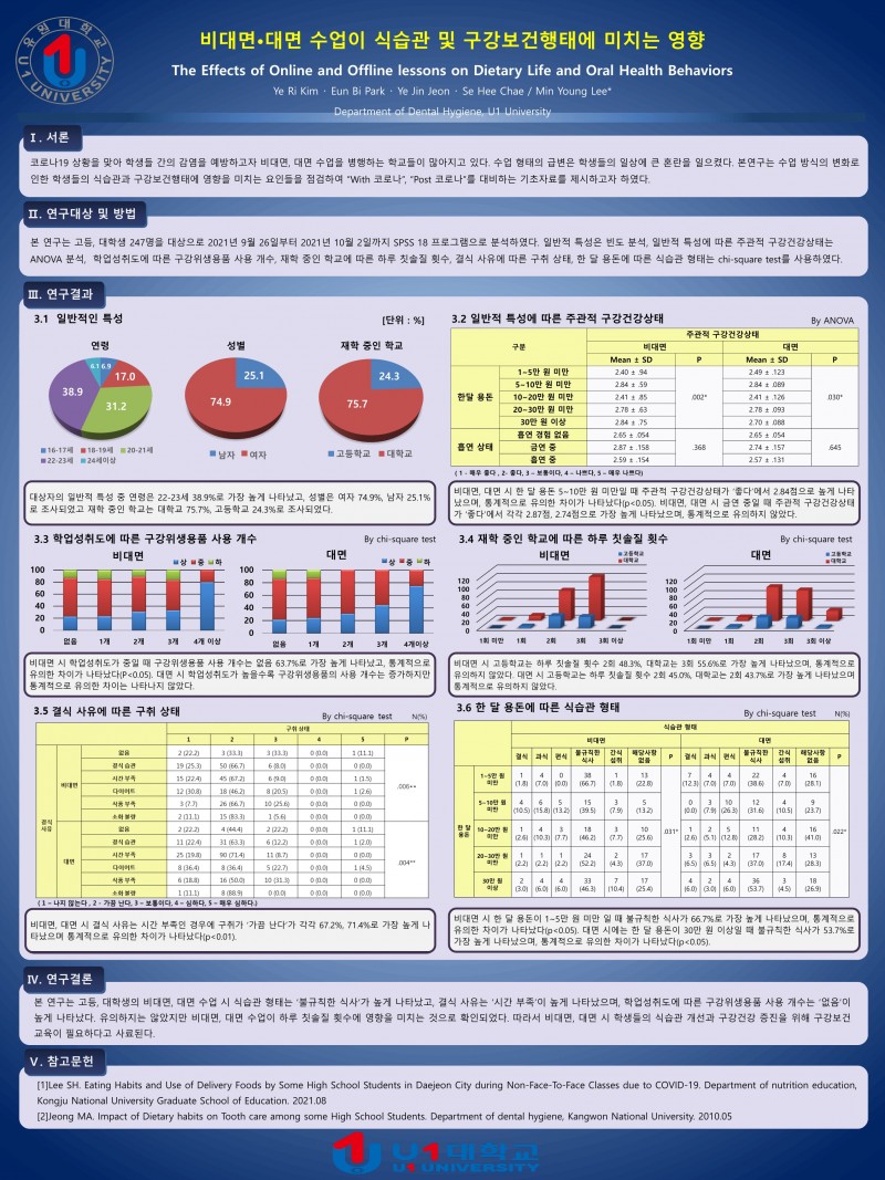 2021 종합학술대회 학생포스터 41. 비대면, 대면 수업이 식습관 및 구강보건행태에 미치는 영향 페이지 정보 작성자 한국치위생학회 작성일21-10-30 21:20 조회1,100회 댓글0건 관련링크 이전글 다음글 목록 본문 2021 종합학술대회 학생포스터 41. 비대면, 대면 수업이 식습관 및 구강보건행태에 미치는 영향 [이 게시물은 한국치위생학회님에 의해 2021-10-30 21:46:17 학술대회참가용 자료에서 복사 됨] 댓글목록 등록된 댓글이 없습니다. 이전글 다음글 목록