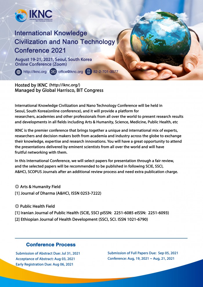 IKNC 에서 주최하고 Global Harrisco, BIT Congress에서 주관하는 '2021년 국제 지식과 문명, Nano Technology에 관한 국제회의 (International Knowledge Civilization and Nano Technology Conference 2021 AUG)' 행사 소식 전해드립니다.