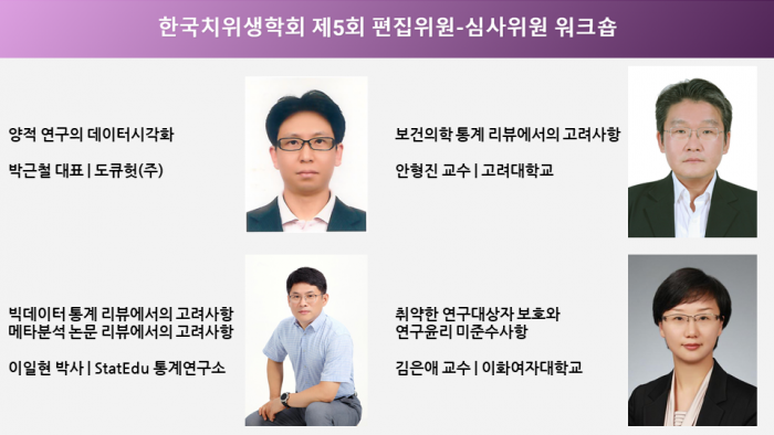 한국치위생학회(회장 장종화)가 12월 20~26일 일주일간 ‘데이터 시각화와 논문심사의 질적 향상’ 주제로 ‘제5회 편집위원‧심사위원 온라인 워크숍’을 개최하였다.