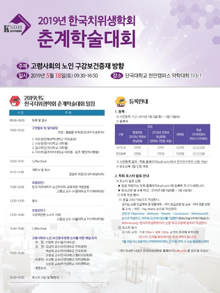 2019년 한국치위생학회 춘계학술대회 개최_등록기간연장 및 보수교육 인정